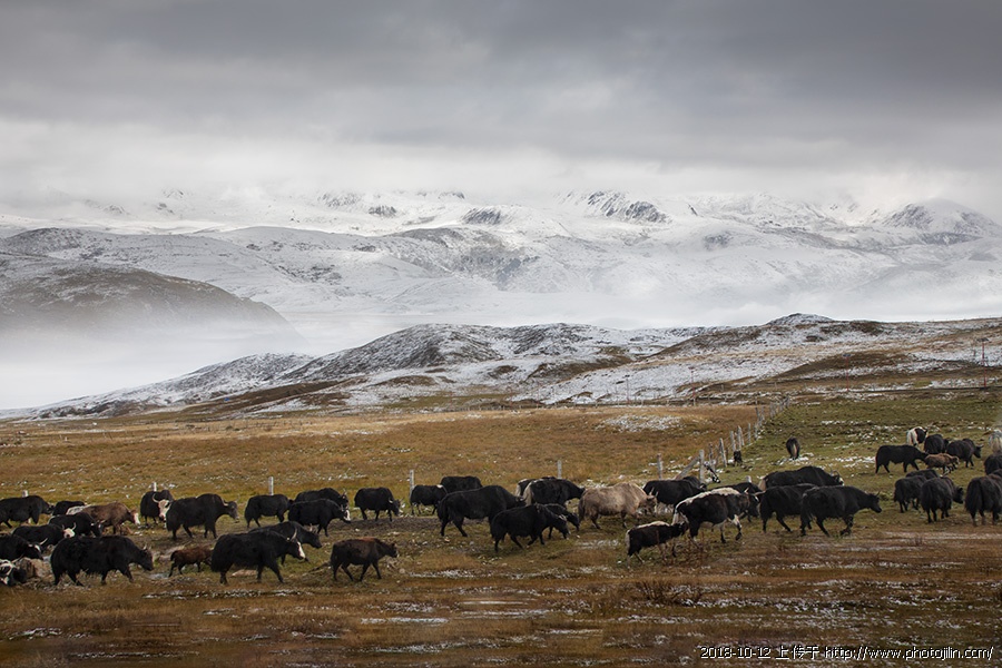 雪山、牦牛,尽显高原特征。