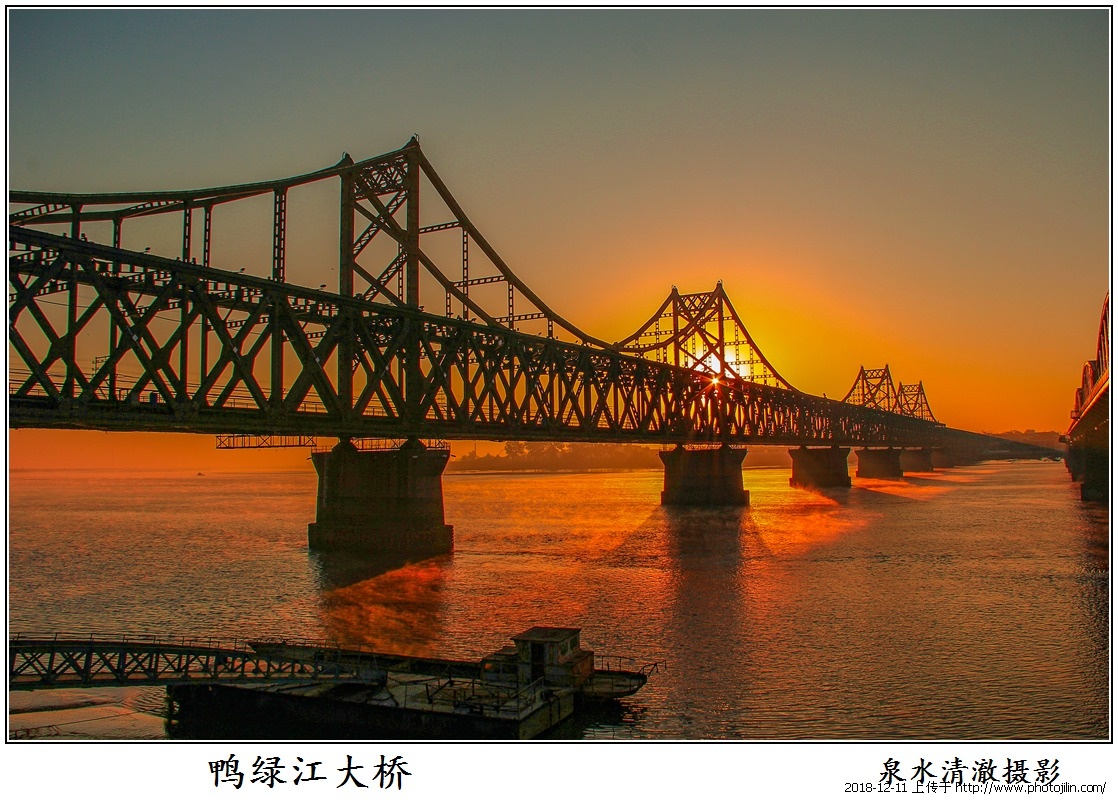 非常美,星芒闪烁,红光穿洞,桥面中国一侧和朝鲜的分界看的很清楚、拍摄角度绝佳,点赞问候。