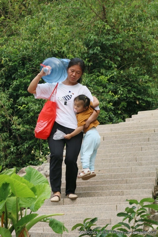 《真功夫》:山上有天然矿泉水,附近百姓常年饮用,这是肩扛水桶臂跨娃娃疾步下山的取水妇女。