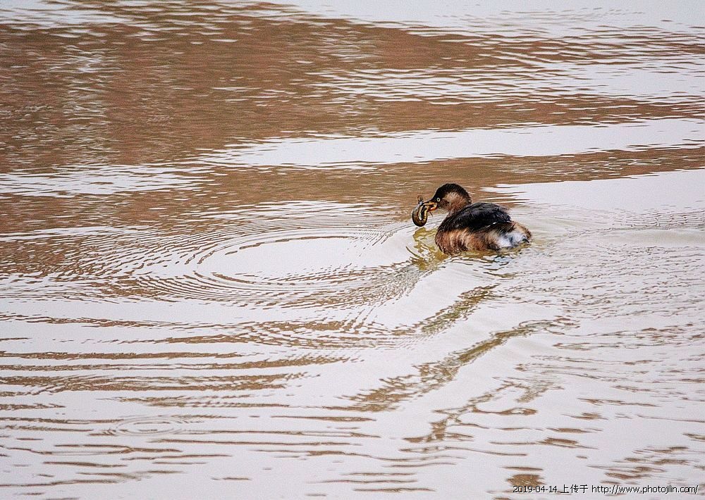 䴙䴘捉了条大泥鳅