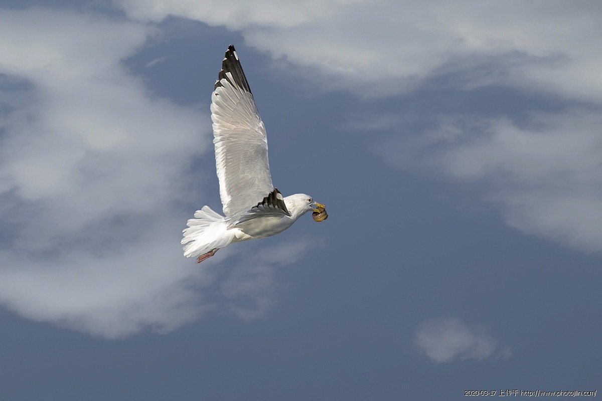 河鸥叼到蛤蜊精彩、漂亮抓拍,点赞。