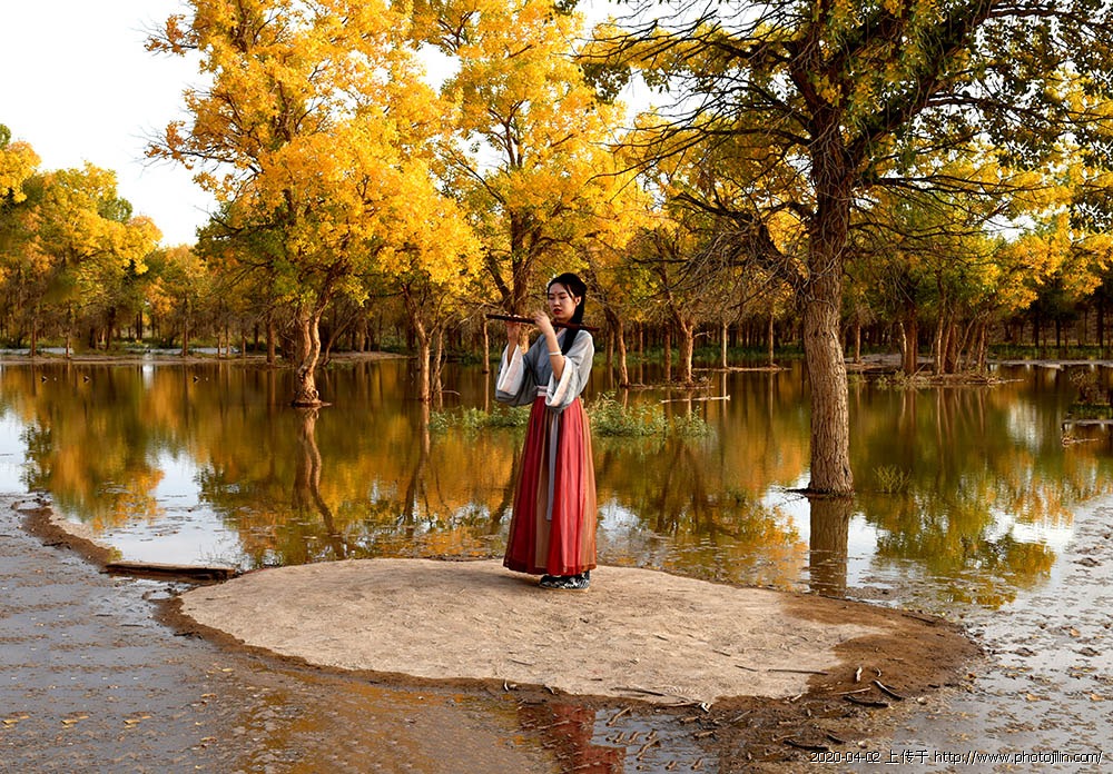 胡杨下、笛声靓女,美图、点赞问候。