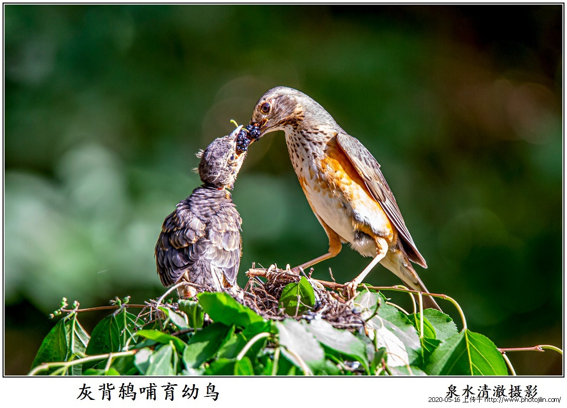 灰背鸫哺育幼鸟