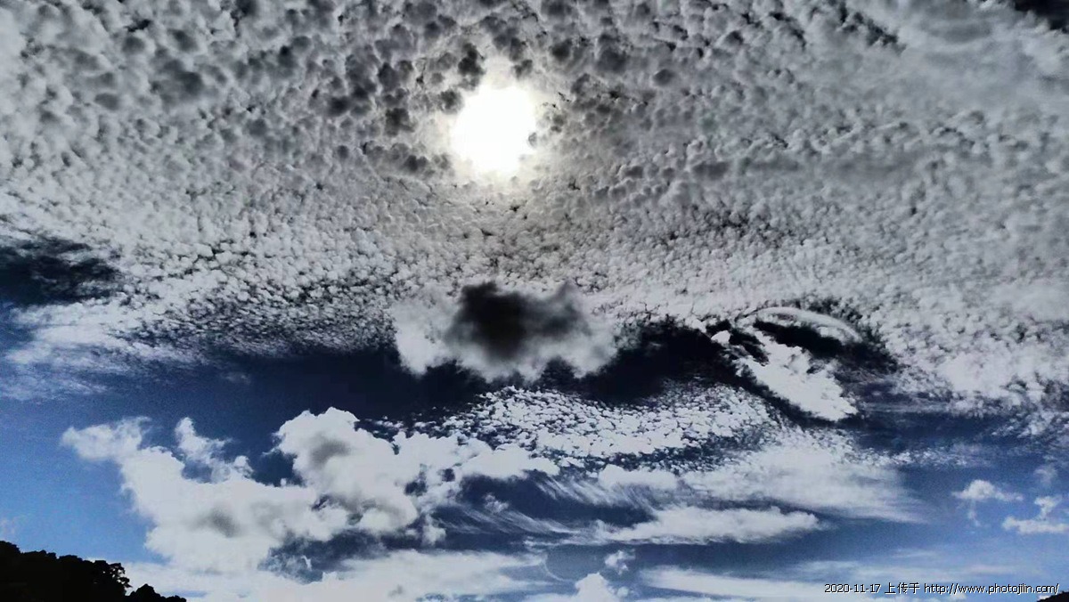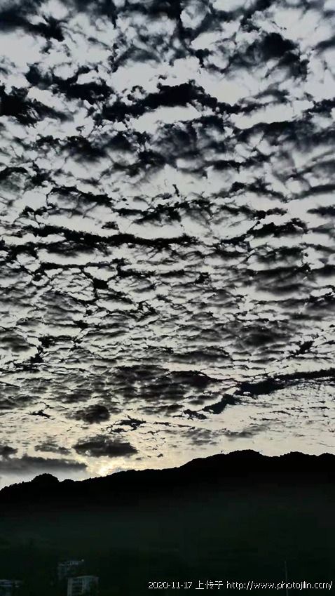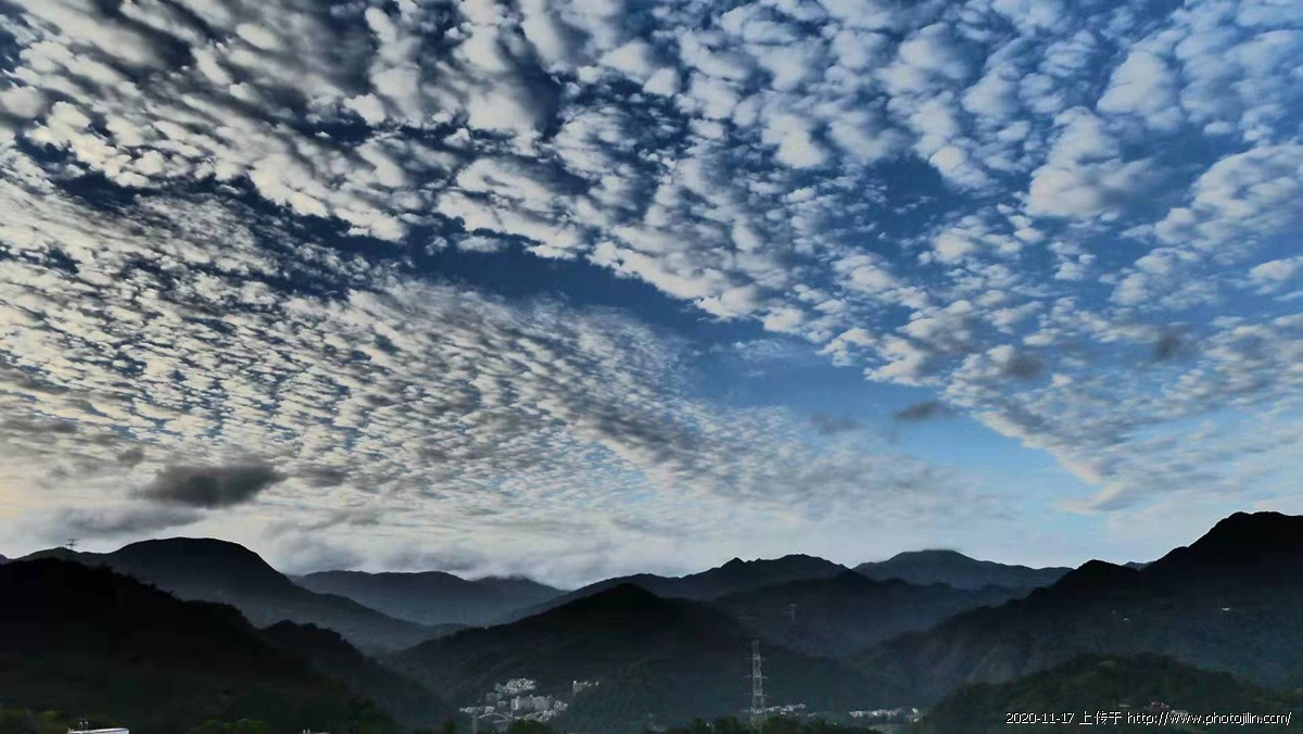 朋友們下午好!今天天色明朗,我帶上背包,相機走入社區的森林步道,抬頭望望天空,滿布(魚鱗雲),大家是否也抬頭望望天 ? 一片片如海浪於藍天上延綿,看上去可愛又壯觀,中央氣象局曾經介紹,指這種片狀魚鱗雲叫高積雲,屬於中雲族,雲底離地面高度在兩千至六千米之間,呈灰色,白色或兩色並存的啐裂雲塊,有時像一片片單薄碎片,也有時以類似一排接一排波浪出現,十分壯觀,引來喜歡拍照的人(打卡),紛紛説冬天的天空很美。你喜歡嗎?