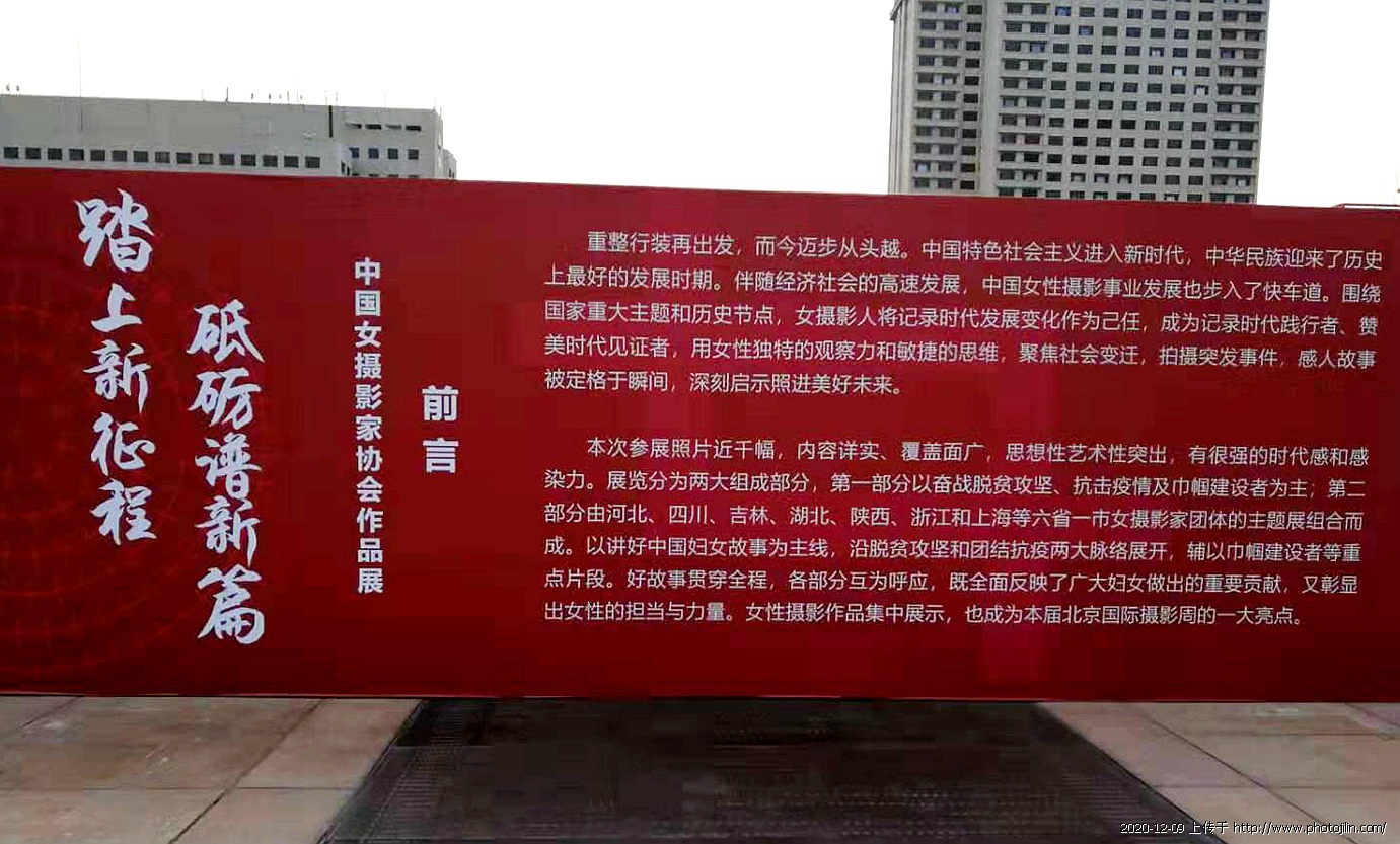 2020年12月7日,由中国女摄影家协会、中国妇女儿童博物馆主办,中国妇女杂志社、人民网图片频道协办,中国艺术摄影学会作为支持单位的“踏上新征程 砥砺谱新篇——中国女摄影家协会作品展”在中华世纪坛南广场展出,我省女摄协40名会员40幅(组)作品亮相北京。