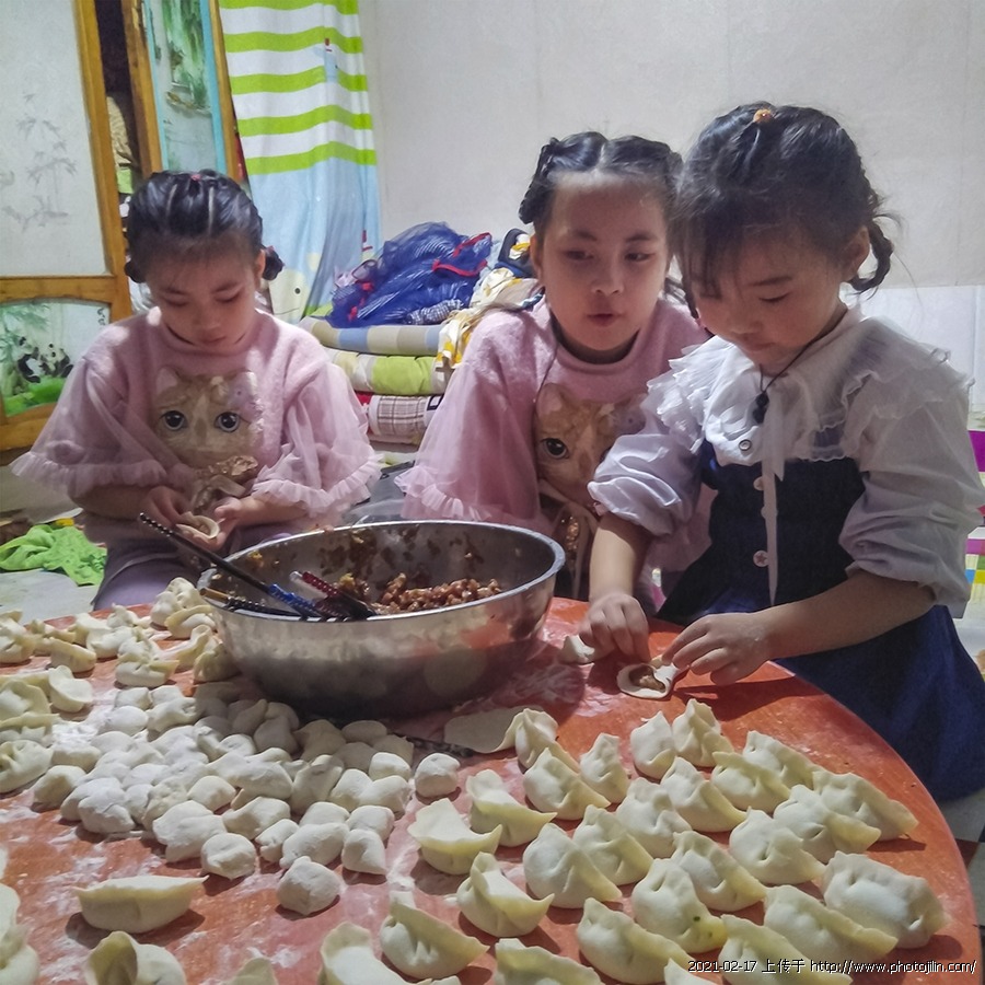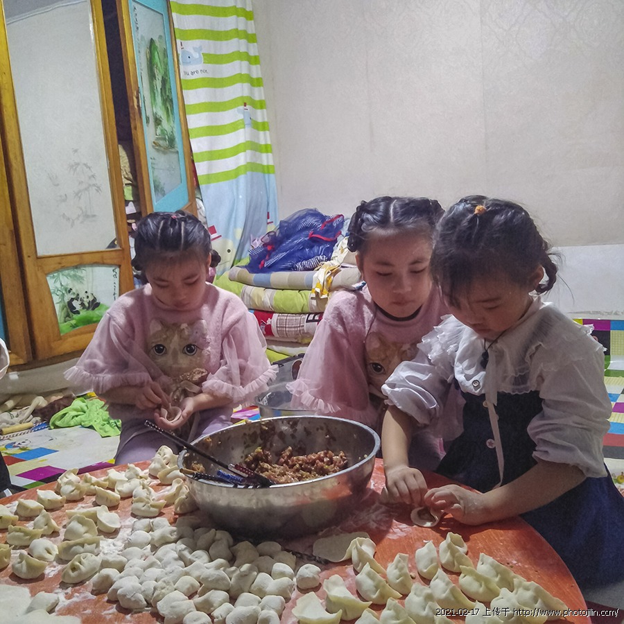 除夕夜仨小美女学包饺子[手机随拍]