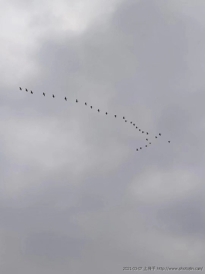 据玉田考证,这是天鹅。大雁没有这么长的脖子、这么优美,体型也比较大。天鹅脖子修长,特别漂亮。迁徙中也是排队的,有领飞天鹅,要降落时队形才散开。这么大群的天鹅很难见到!