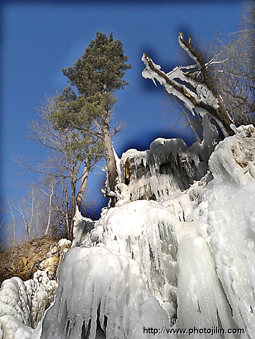 漂亮的冬季长白山。冰雪周围的黑晕是怎么回事?