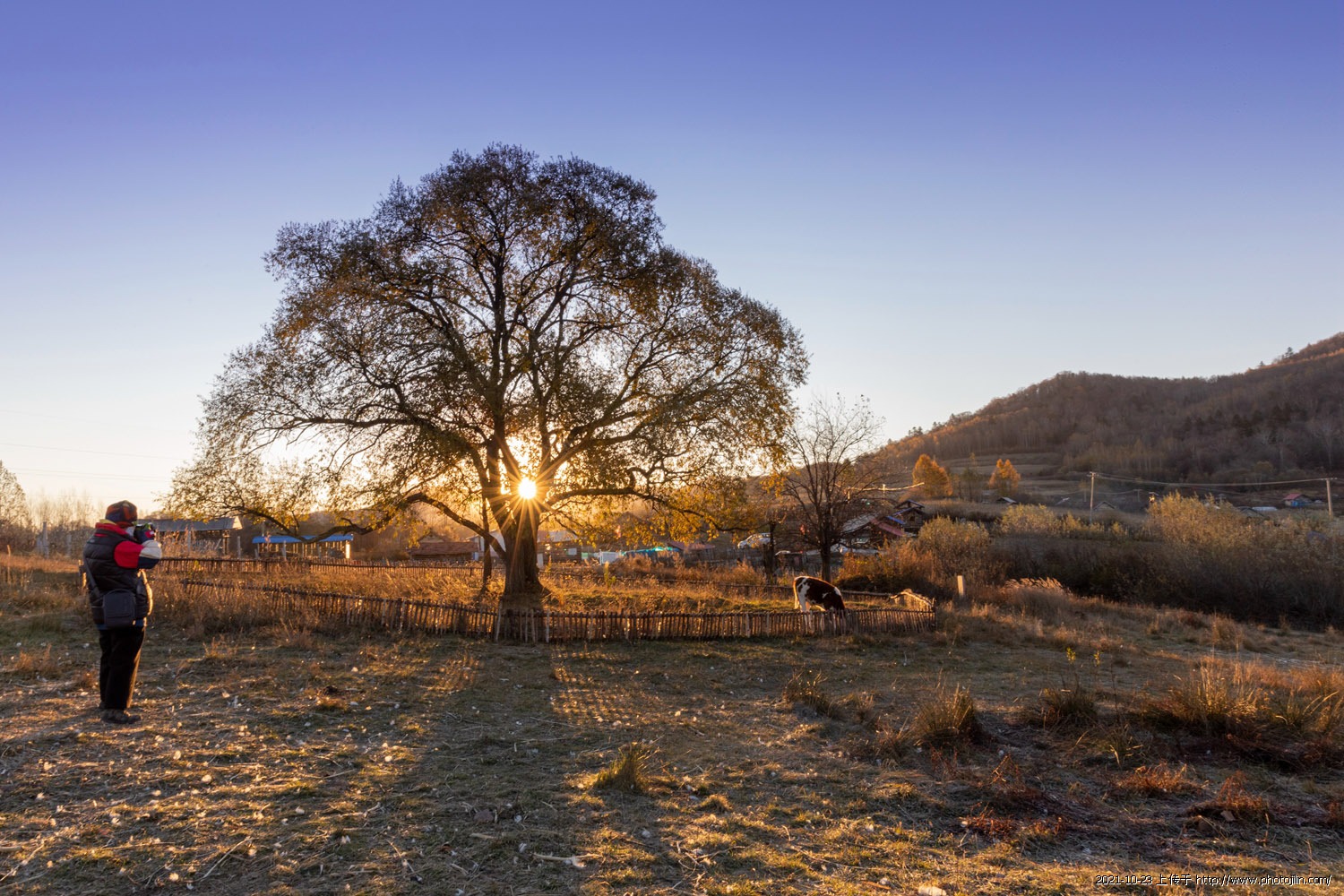 吉林省白山市临江市六道沟镇。有做小山村“火绒沟”村,走进村庄我们就会看到一棵大树,据说这棵大树叫“姻缘树”至今已有百年历史!2021.10.18摄于火绒沟村。