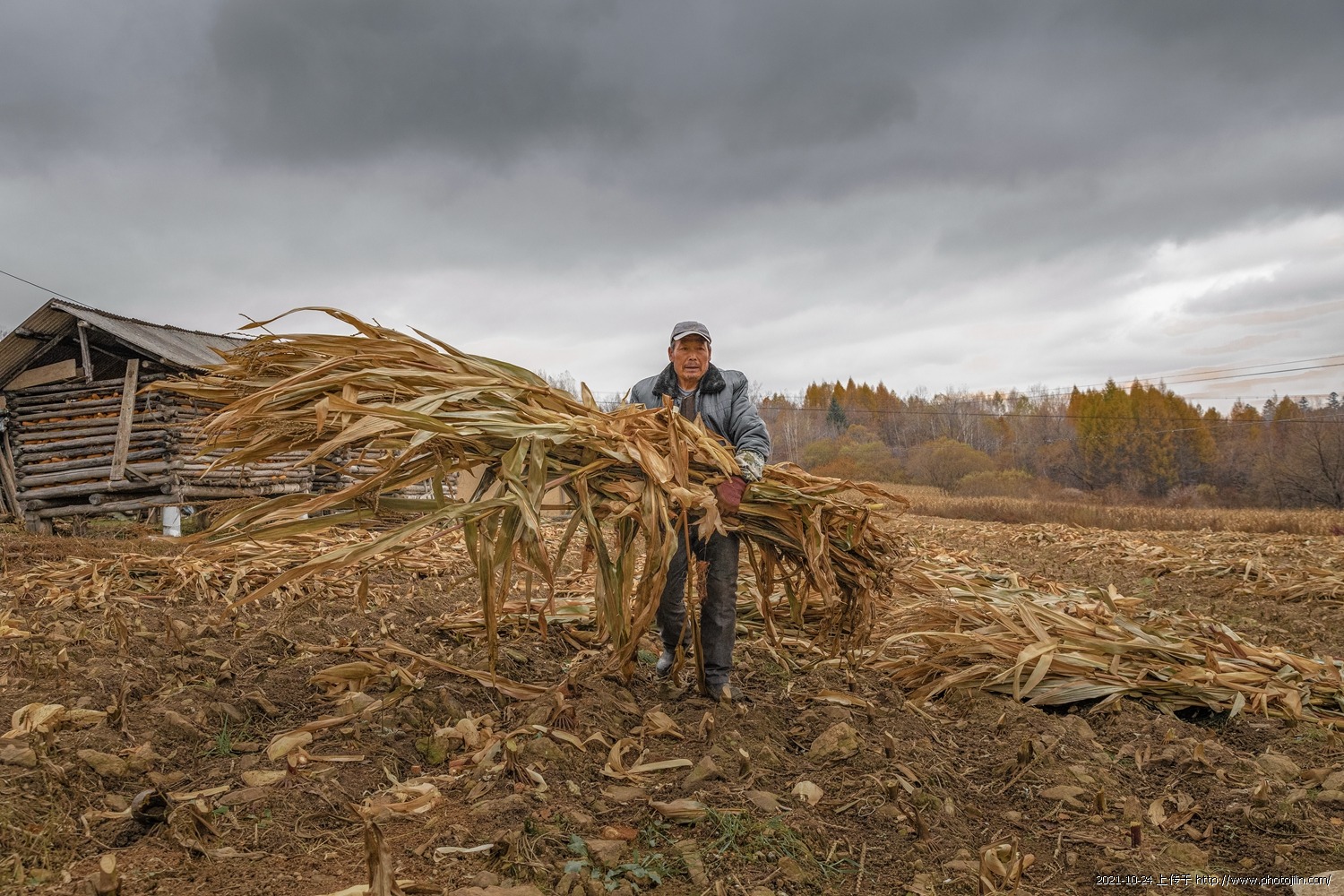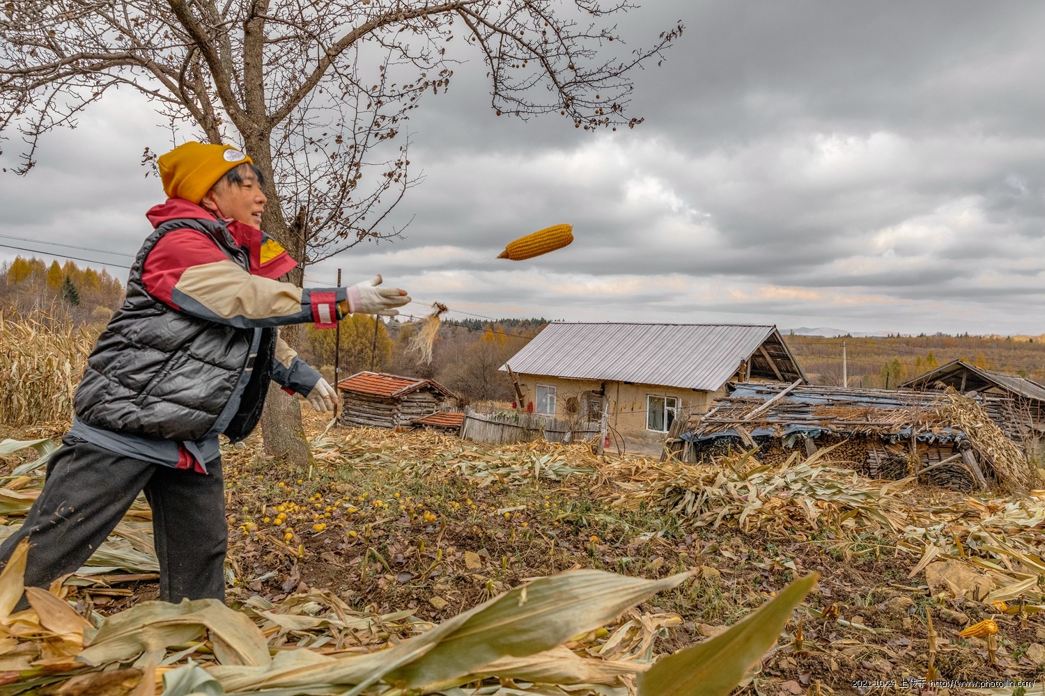 [url=]吉林省白山市临江市六道沟镇。有做原始的小山村“火绒沟”村。小村落很原始但人勤物丰,和谐稳定。这里的老人一直守护自己的家园,秋收了,去县城工作的子女们都返回家园忙秋收,这位大爷72岁,女儿回来帮忙收玉米,我们也融入这丰收的喜悦里,帮着扒苞米![/url]