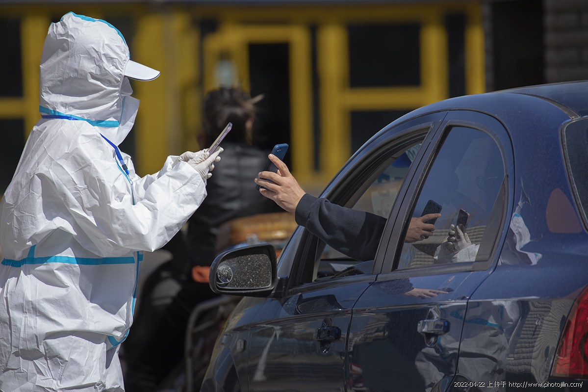 管控小区工作人员对出入车辆、人员,严格执行扫码制度,守卫小区安全——向他们致敬。