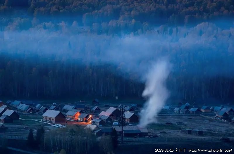 蓝色的静美,祥和的山庄,一幅山林深处漂亮的风景线。赞赏佳作!