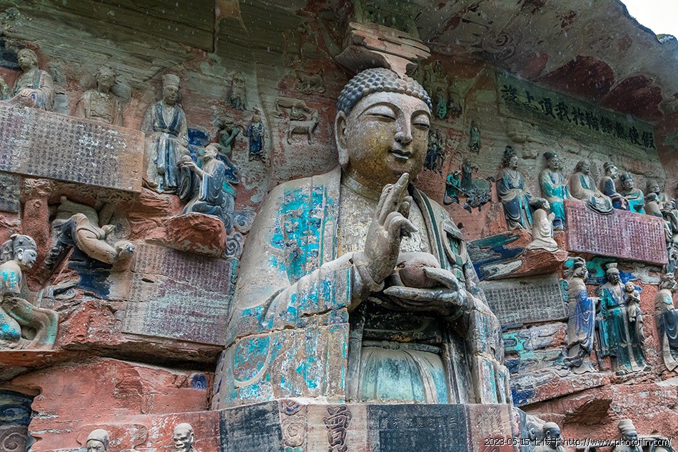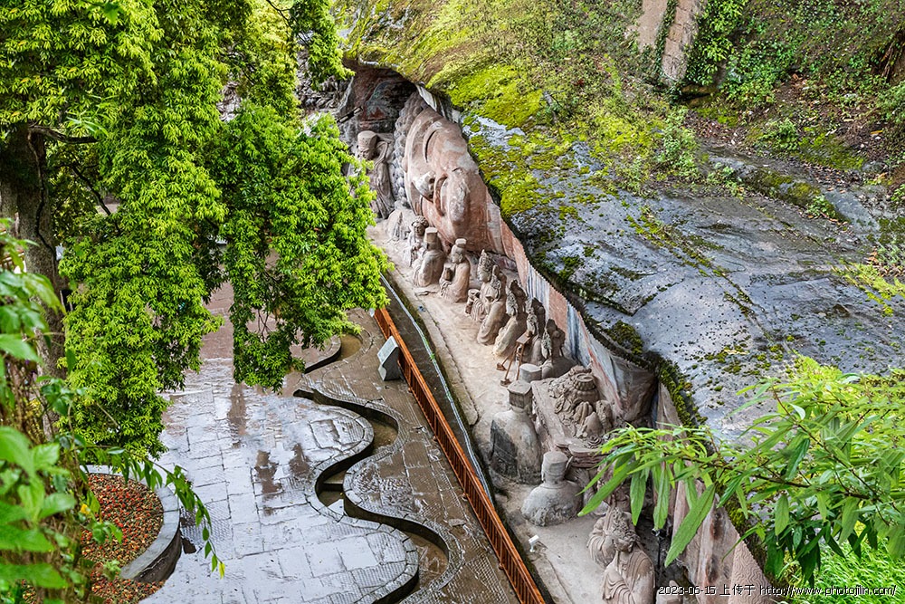 重庆大足石刻,位于重庆市大足区,始建于唐代,距今已有一千多年历史。它是中国现存规模最大、保存最完好的一座岩石艺术瑰宝,也是全世界著名的石窟艺术之一。石刻挖于崖壁上,形象生动,内容丰富,是中国佛教艺术、雕刻史上的重要遗产,也是世界文化遗产。