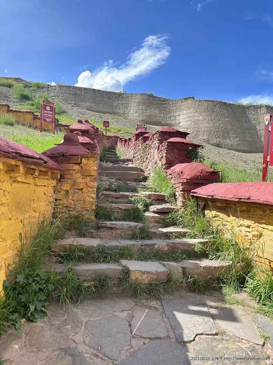 目前对游客开放的,只有松赞干布和文成公主的合葬墓,可以沿着台阶走上墓顶~
