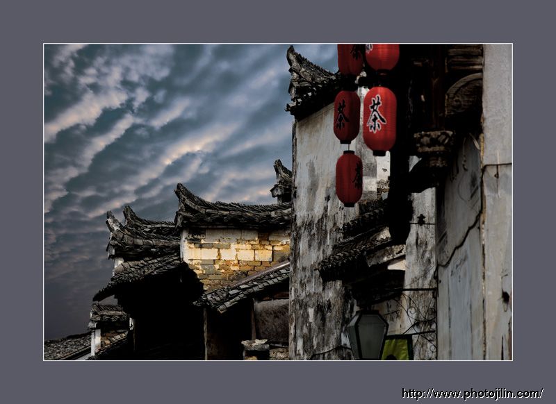 图片下方的玻璃灯 和天上变幻的风云 与岁月相佛 那串红色的灯笼 太过招摇 喧宾夺主