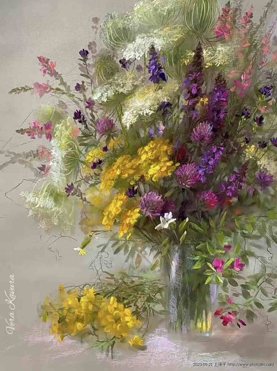 维拉·卡武拉(Vera Kavura)是乌克兰当代著名的色粉画家。她的色粉笔作品表现力强,色相非常鲜艳饱和,作品具有特殊的表现效果,她绘画的花卉生动明艳,活灵活现~
