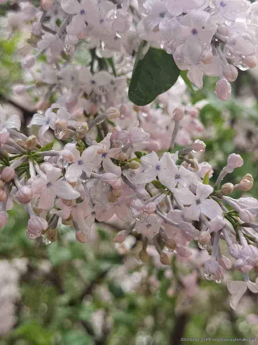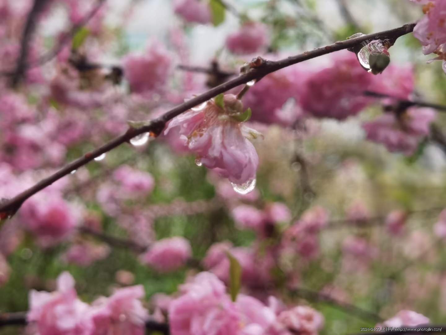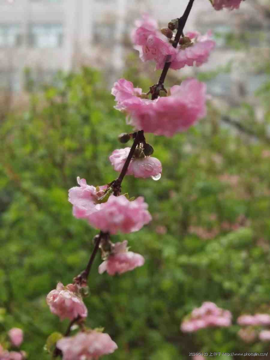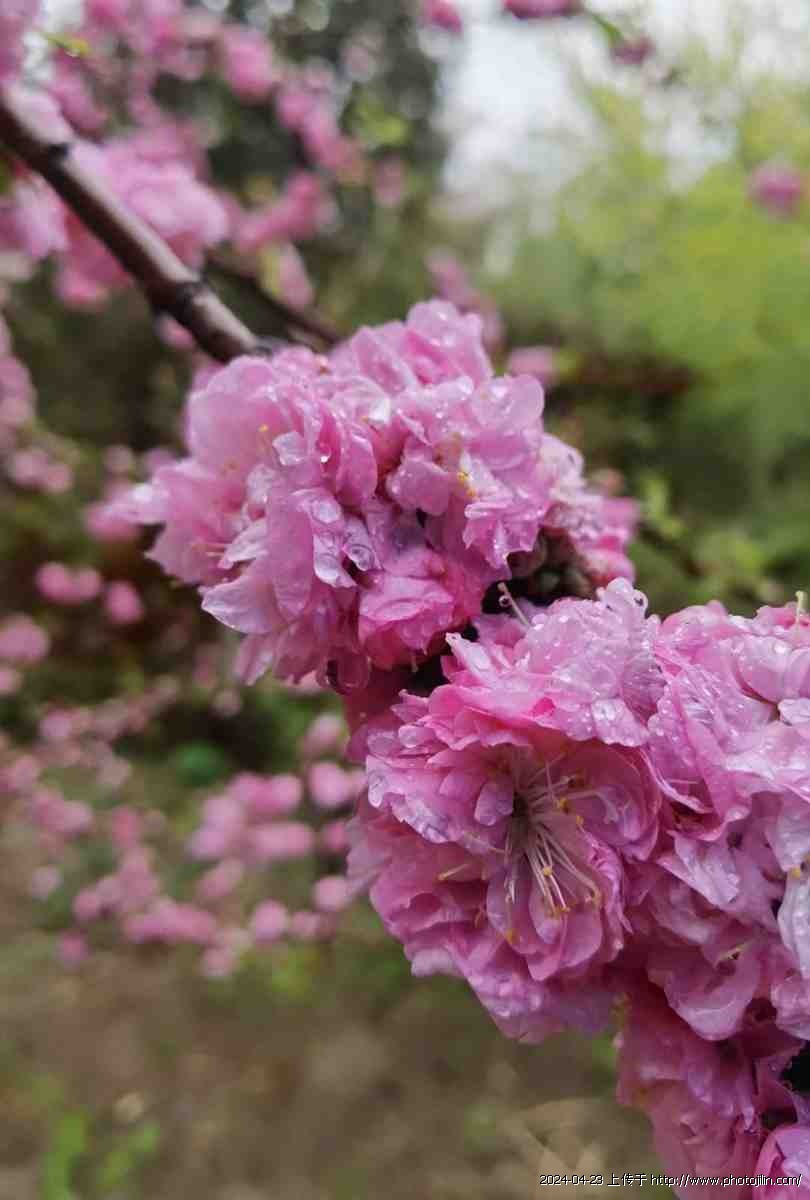 枝桠、蓓蕾、花蕊、花瓣皆润着水,空气也湿润清新,真让人流連,全不顾青衫渐湿。