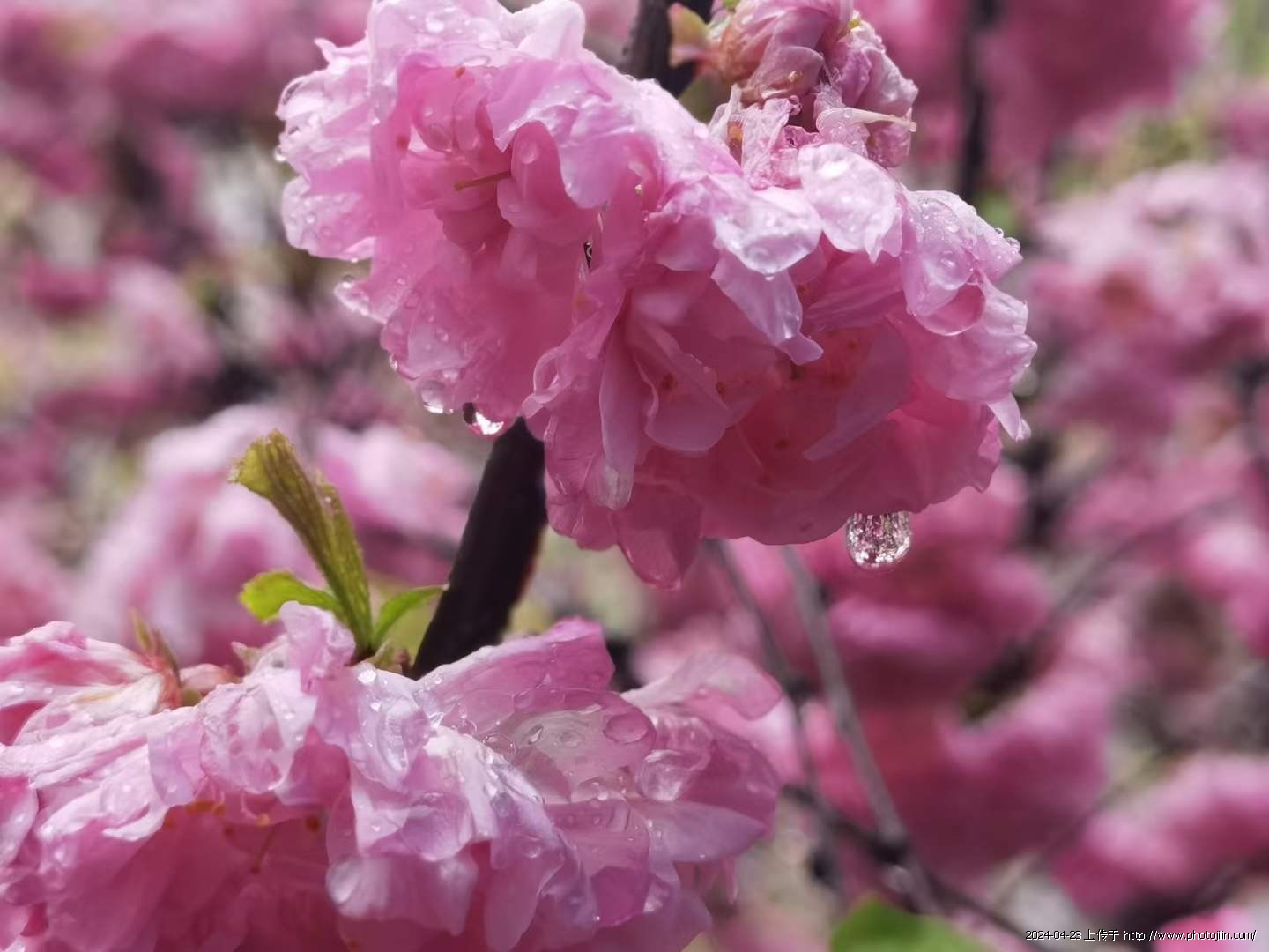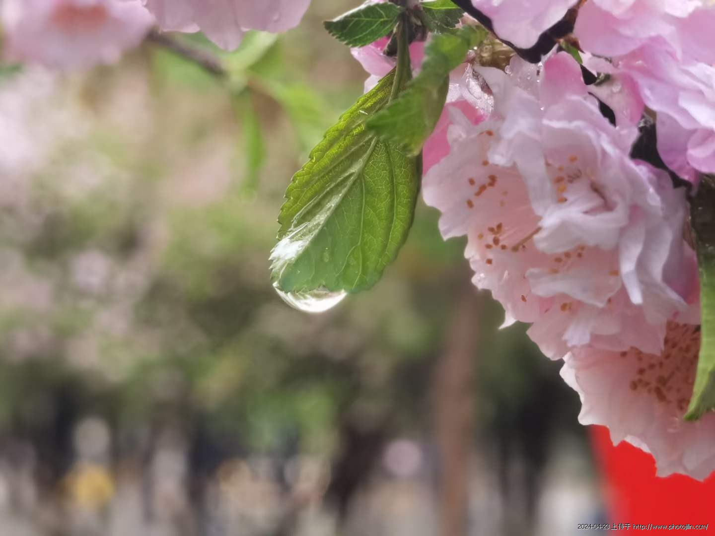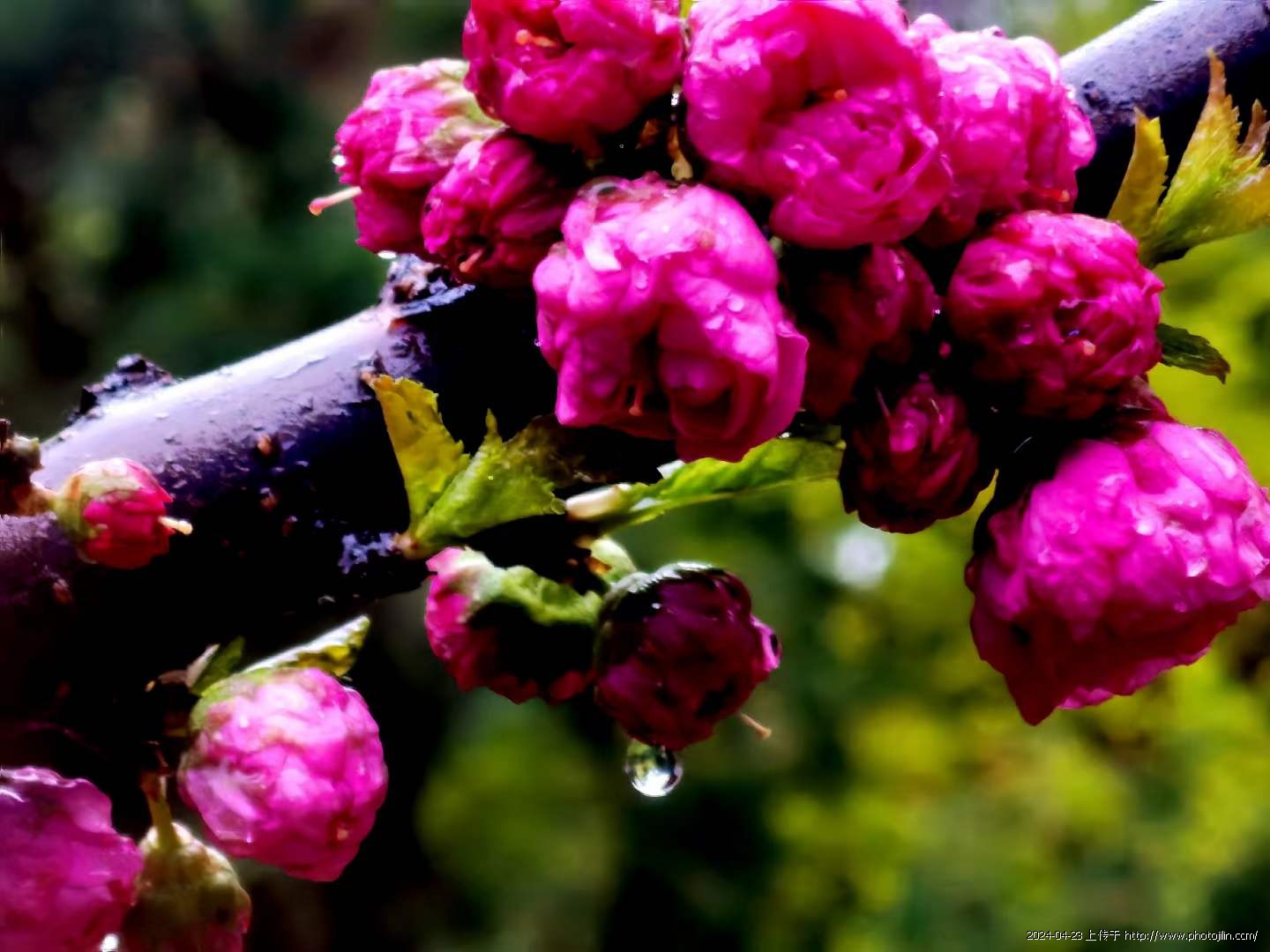 枝桠、蓓蕾、花蕊、花瓣皆润着水,空气也湿润清新,真让人流連,全不顾青衫渐湿。