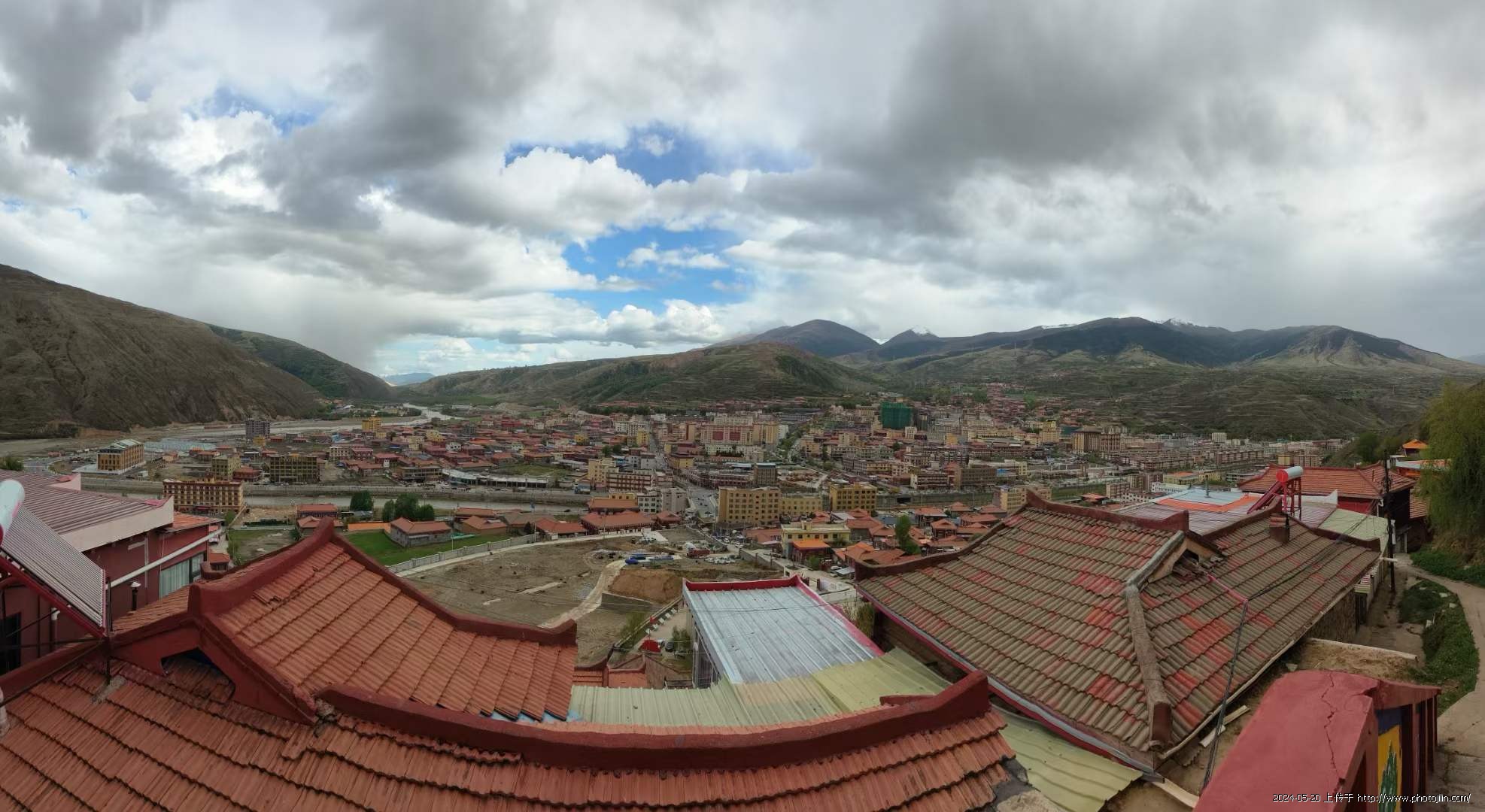 炉霍县只是返程途中歇脚地,可看的只有山上的寿灵寺,爬上去看到寺院正大兴土木不开放,俯拍县城。