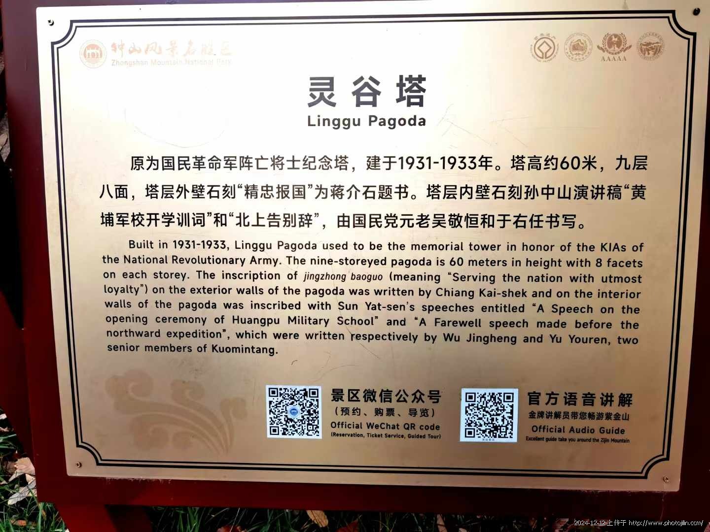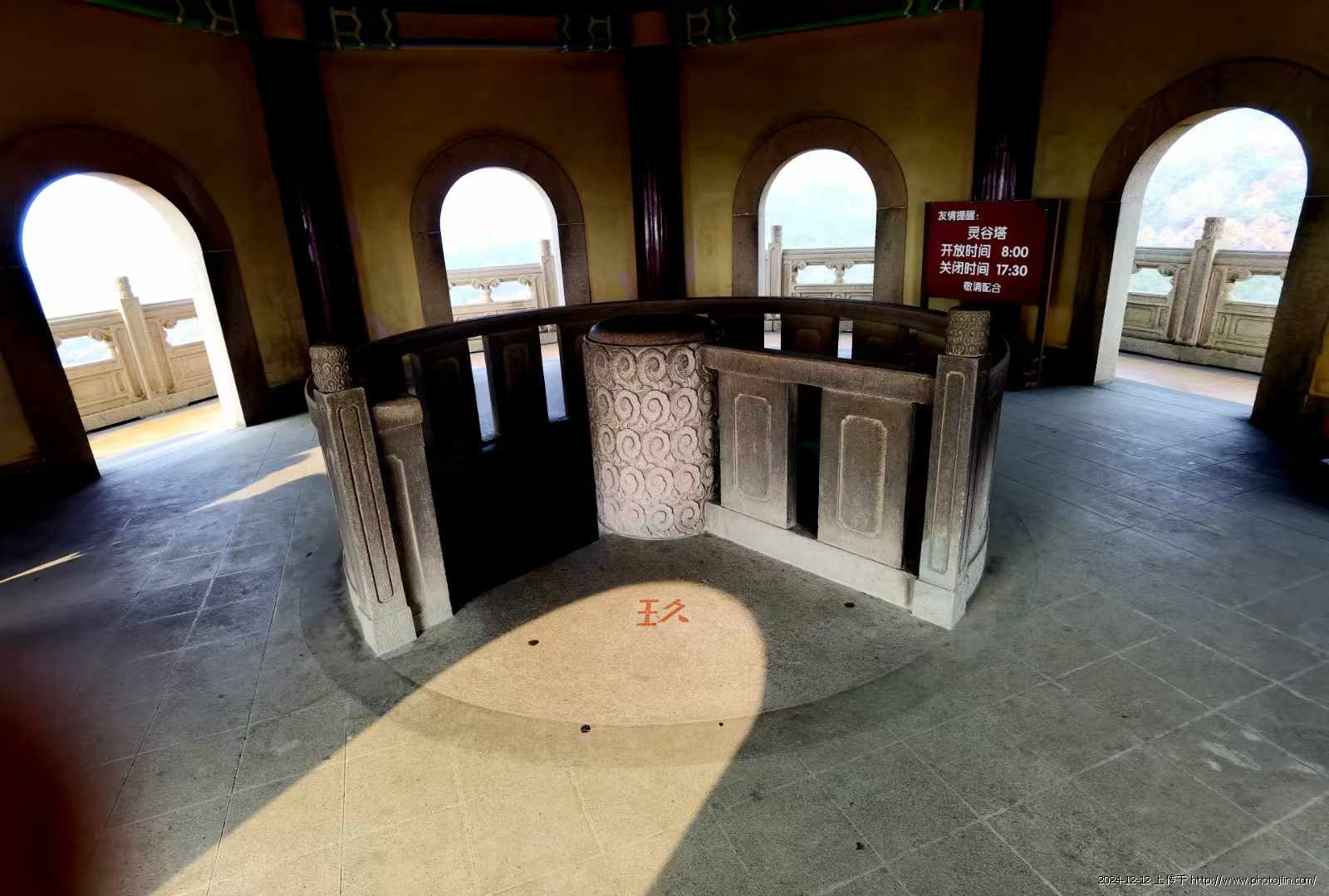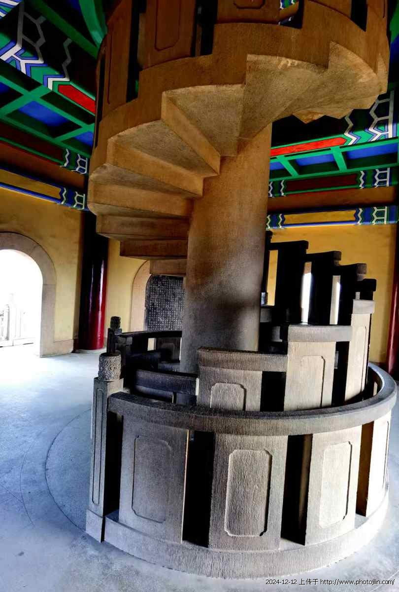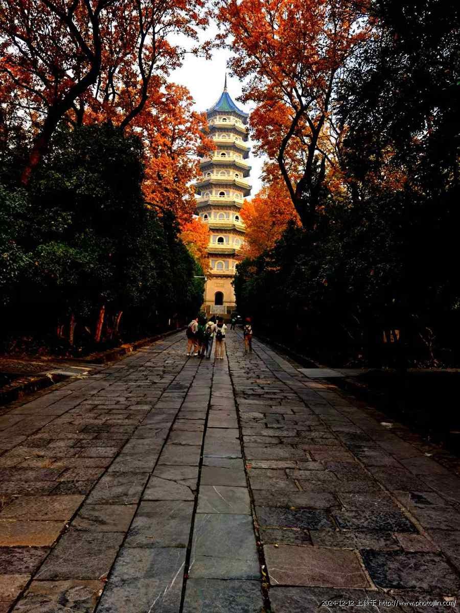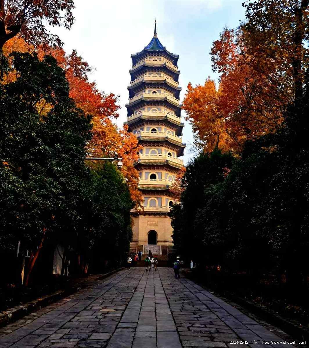 初冬赴金陵,看了与中山陵相邻的灵谷寺景区,在景区(图八)的最北边,有座灵谷塔,始建1931年,高60多米,共九层八面,楼梯在塔中心,沿主柱盘旋而上,十分别致(图四)。