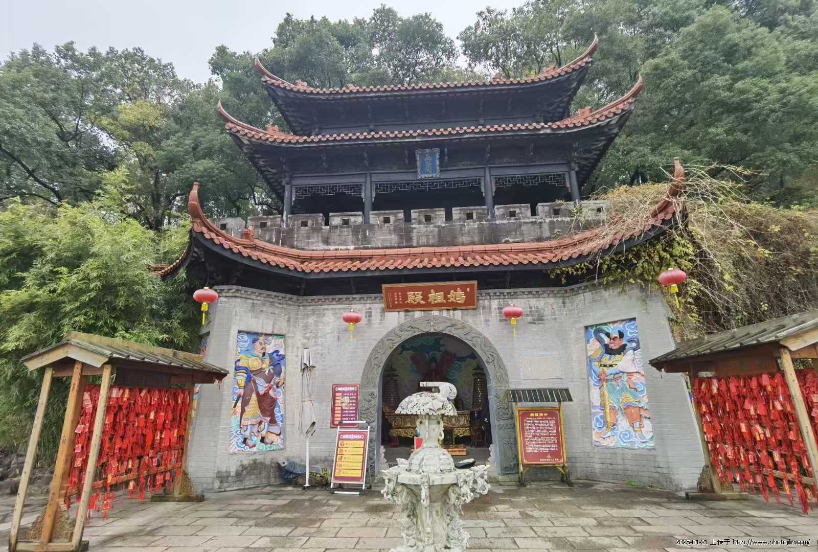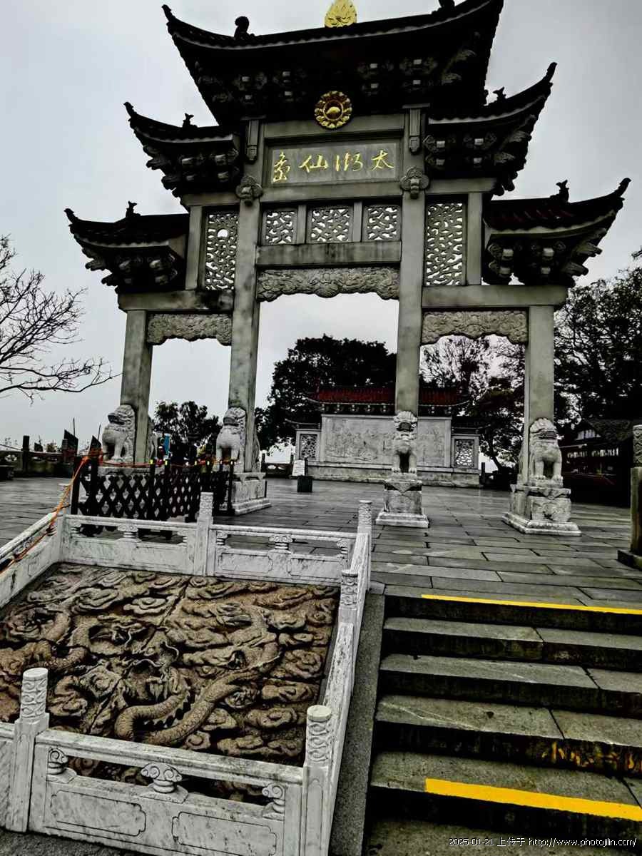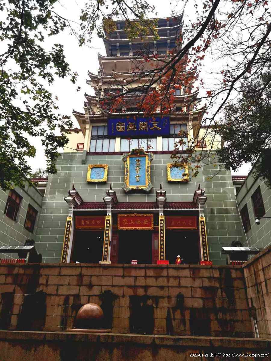 远看似荒岛的鼋头渚其实内涵很深遂。有“太湖仙岛”的牌坊(图二)、有帆樯(图三、八)、有供奉玉皇大帝的灵霄宫(图五)、老子雕像(图六)、摩崖石刻像(图七)、妈祖殿(图九)……