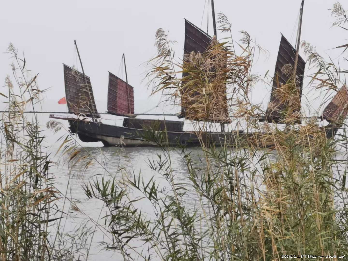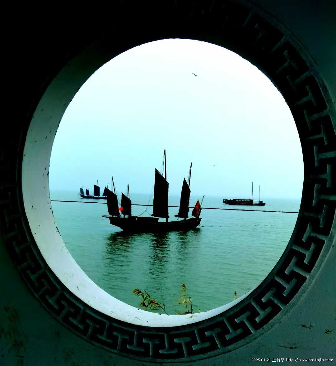 到底是岁数大点儿,火力不壮了,刚开船,我就觉着冷,阵阵寒意从脚下升起。手机上的本地天气预报说是零上10度~3度,水也未结冰,我也在保暖內衣外加了驼绒毛衣并加一棉坎肩,外套羽绒服。下身是衬裤加绒裤再套羽绒褲,脚蹬棉鞋,却瑟瑟发抖。这身装束在咱塞外哈达街过“三九”也不冷,在这咋冻寒碜了呢?百思后得出结论为塞外是干燥的冷,似俄国作家契诃夫在短篇小说《凡卡》里所写“天真冷,干冷干冷的。”而这里极目所见皆是水,烟波浩渺,又赶上阴天,怎一个“湿”字了得!我这在塞外生活了八十年的老豆荚子置身于阴冷中自然傻了乖乖……