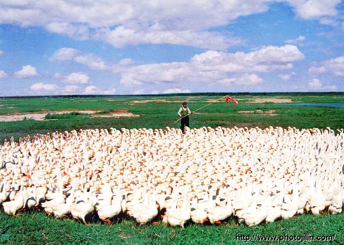 草原牧鹅曲。画面真美。鹅群有些混沌些了。 |