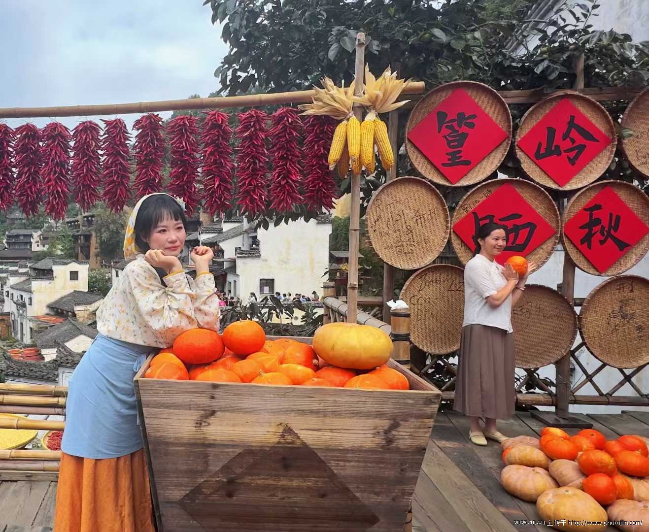 在篁岭晒秋的绝美画卷里,古装丽人们宛如从田园诗中走出的精灵,为这充满烟火气的丰收盛景增添了一抹雅致的古韵。