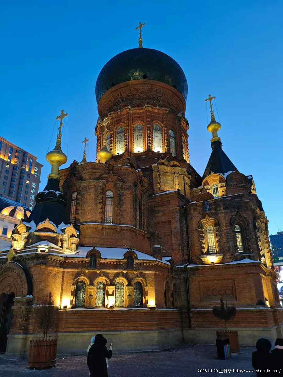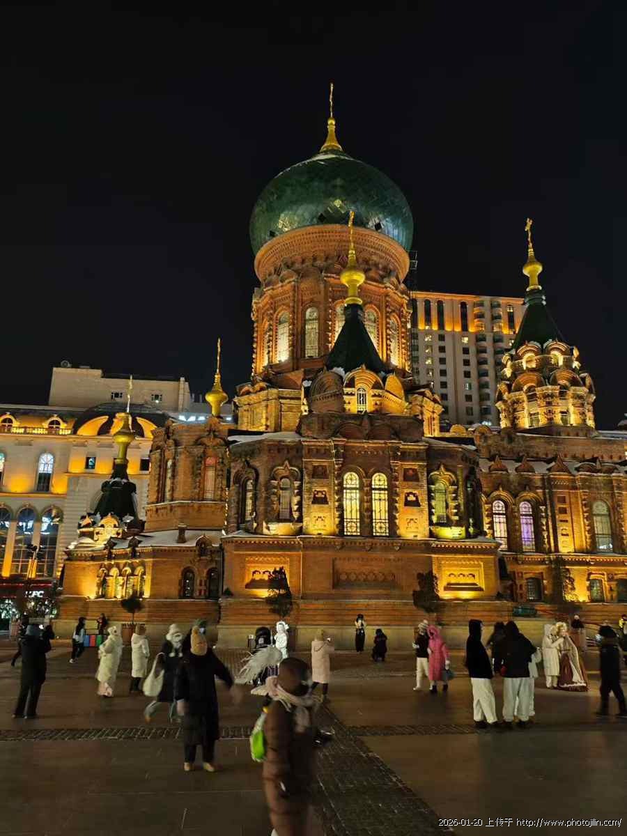 深蓝夜空下,暖黄路灯与楼窗灯火交织,橙红色尖顶小楼、圆顶的蓝堡酒店在夜色里格外醒目;街角烧烤摊升腾的烟火,让冷冽的冬夜多了几分市井暖意。从现代楼宇到欧式建筑,从城市灯火到街头烟火,画面里既有都市的规整秩序,也藏着人间的鲜活温度。
