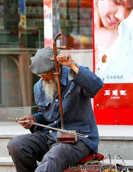 拍摄时如果再向左侧挪几步会更好,这样可充分利用好背景元素。当老者调弦时,广告牌上的年轻人象知音一样正好低头欣赏,不但对比强烈,上下呼应,一幅幽默的场景也跃然纸上,使观者在轻松中似乎又受到某种启迪。(那时题目不妨就叫“知音”)