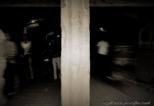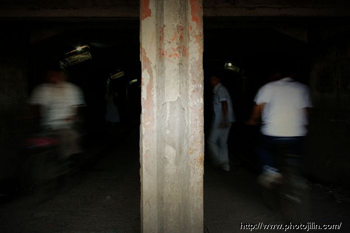 左边的通道是从里往外出,右边的是从外往里进,想抓到同时进去的人,抓了十几张也不理想,灰实在太大了,只好放弃