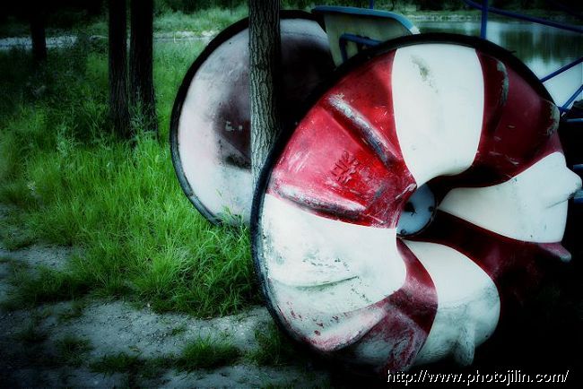 在一部恐怖片里看过类似的画面,所以按这样做了,拍时就觉得这车轮挺吓人,哈哈