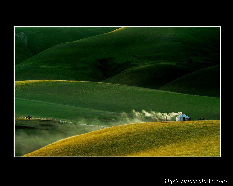 升起袅袅炊烟的白色蒙古包!!