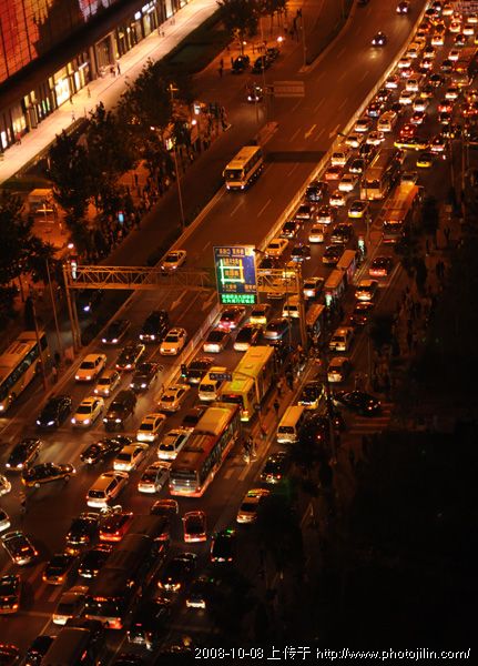 这是高角度看街口,塞车严重。相机端得很稳啊,向怪柳学习基本功啊。