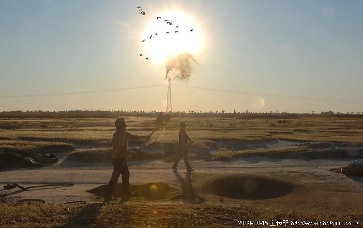 晚霞下的秋收场景,令人勾起往事的回味,看的贴近,亲切。