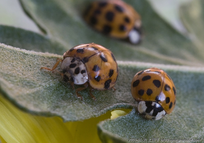 花大姐(七星瓢虫)03 进如冬季,花大姐几乎绝迹,昨天不知在那冒出几只上了我的月月菊,抓住机会拍几幅,请欣赏和指导。