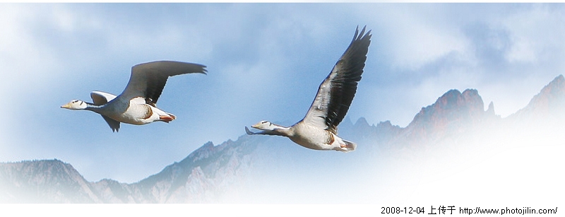 雁姿优美,背景有气势,命题也好。只是右下角有些纰漏。