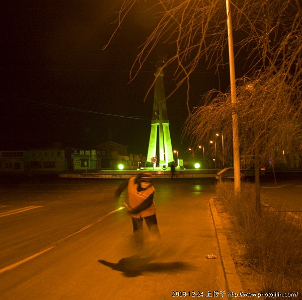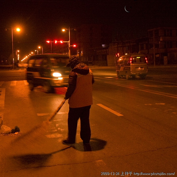 夜幕里拍的如此清晰,月丫拍的很清楚,环卫工人的扫街动作虚实结合,很有气息。真是高手。