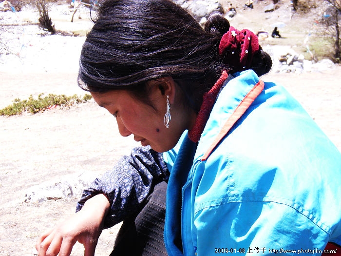 我两次进川,曾经走过康定,新都桥,塔公,道孚,炉霍,马尔康,阿坝,米亚罗,稻城,雅江,丹巴----所走过的地方无论是家园还是田野,也无论是草地还是高山,只要有人的地方,都能看到那束着鲜艳头饰,扎着斑斓围裙的藏族女人在干活。她们能骑着飞快的骏马追赶牛群,也能迎着风雪挽回迷失的羊儿,可以身背数十斤的泥土踏着独木梯子爬上二十几米的藏屋房顶给新房填土,还可以在烟雾缭绕的帐房里打酥油茶,磨糌粑,烧火做饭,飞针走线,里里外外,拳打脚踢。透过那被汗水湿透了的衣裳,可以凸现那结实而又纤弱的美体,沿着发梢淋下的汗珠,能折射出她们的坚韧善良与乐观。西川的女儿,让我对她虔敬如观音菩萨,那善良与勤劳如她们崇尚佛祖那样一如既往。