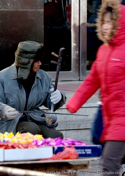 这是正月三十拍下的图片。正赶上寒流袭来,凤吹来刺骨的冷,面对来往的人们,一位拉琴人带着手套,拉着并不悠扬的曲,拉一段暖暖手。。。。。。我站了一会,哈着手拍了几张片子。
