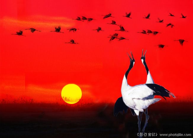 三底合成的、见笑了!本来有意把鹤的正面作成剪影了、后来一看这样也挺有意思的就算了:-| :-|