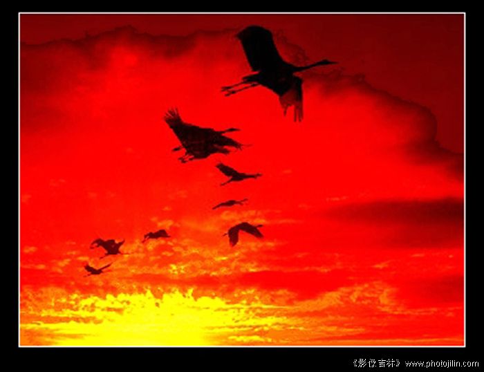 晚霞迎鹤归