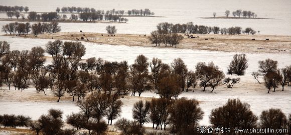 好一幅“寒江松牧图”,清新、典雅如水墨画一般。漂亮。