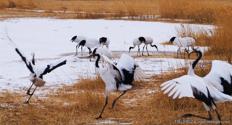 漂亮的群鹤起舞。