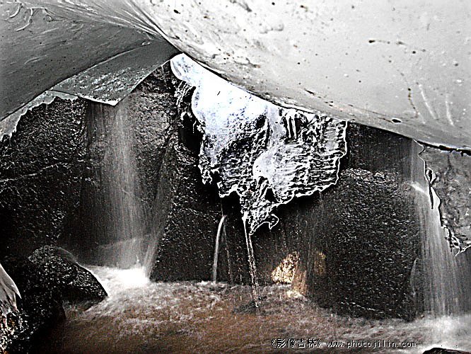黑色的岩石和洁白的融水