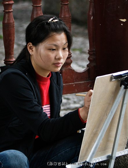 写生作画的美女哦。
