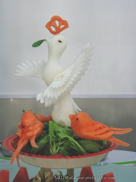 三食堂的厨师长的作品,用的材料都是萝卜。可赞!