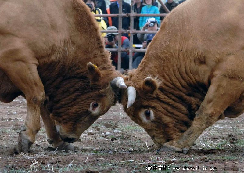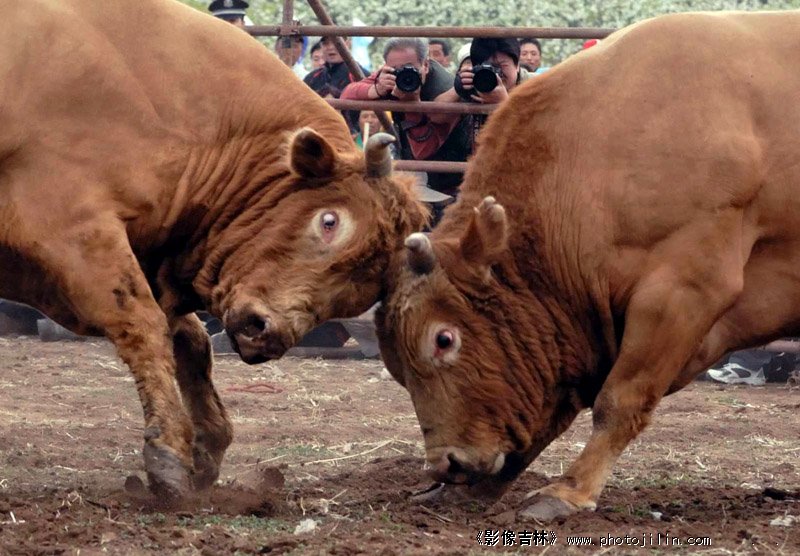 两头牛在场上叫劲