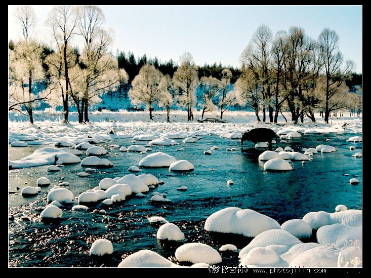 拍的美。有河有雪,有树有牛。有静有动,色彩柔和。赞!