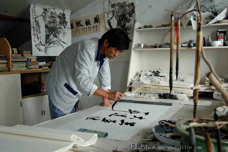 每年的春节前夕,他都组织书法家开笔会,切磋技艺,展示作品,06年还开了一个特殊意义的笔会,将他们写的楹联陪市领导送到灾区,贴到几十家灾民的门上。这是真正意义上的文化下乡,领导的关怀,书家的佳作,让灾民们感动不已。